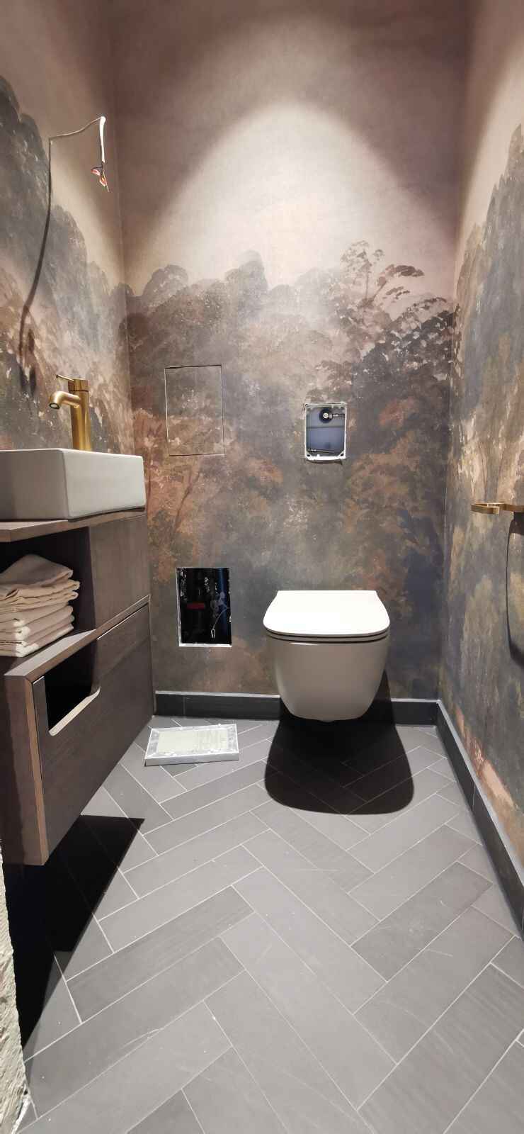 Hochwertiges Gäste WC mit Motivtapete im Westend