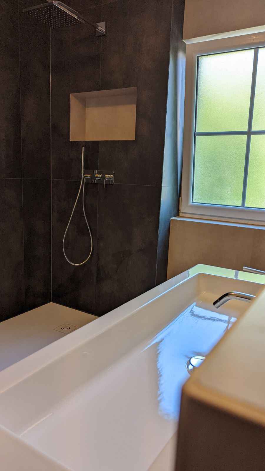 • Fliesen 120×60, Unterputzarmatur in Dusche